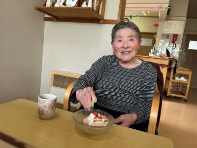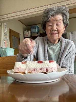 昨日、飾りつけをして冷蔵庫で固めていたレアチーズケーキを実食しました。程好い甘さで、クリーミーで美味しいです。半日、待った甲斐がありました!皆様、ペロリと完食。また、作って食べましょうね。