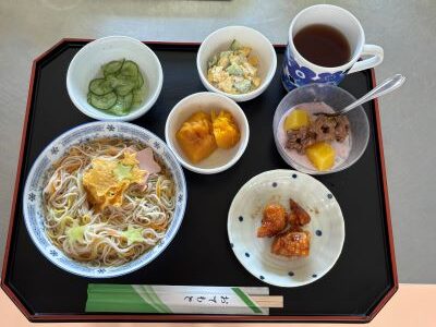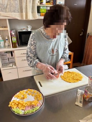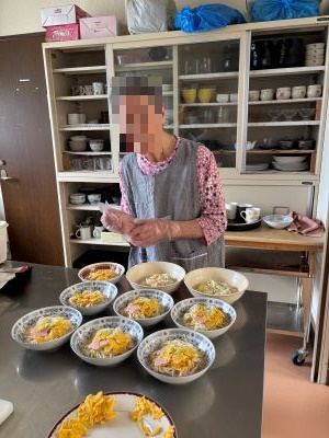 7月7日、七夕の昼食に「天の川そうめん」を作りました。そうめんは、彩そうめんで色んな色が入っており、とても綺麗です。トッピングは、きゅうりとハムと卵で星形に型抜きしました。素敵な「天の川そうめん」の出来上がり!「願い事は何にしようかなぁ~。」と話しながら、皆様で美味しく頂きました。