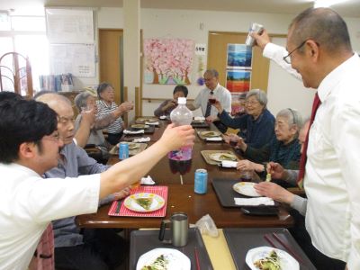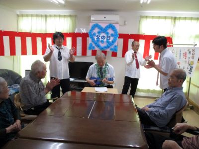 お父様方に感謝し、お祝いのコンサートを開催いたしました。皆様一緒に歌い、手拍子でお父様たちはいい気分です。ノンアルなのに、歌会ではほろ酔い気分で笑い声があちこちから聞こえてきます。家族様からもプレゼントが届き、父としての威厳が感じられる父の日でした。お父様方、いつまでもお元気でいてください。