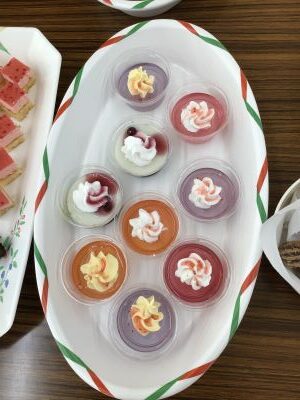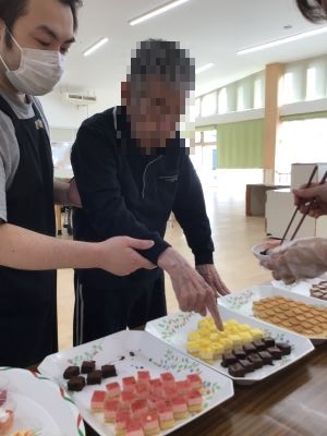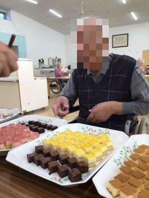 9月15日、入所されている皆さんへ敬老の日のお祝いという事で、ケーキバイキングを行いました。皆様、たくさん種類があるケーキに「どれにしようかしら。」と悩みに悩んだ末、全種類を食すという結果に。甘い物は別格です。たくさんのケーキを前に笑顔が溢れる一日となりました。