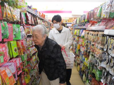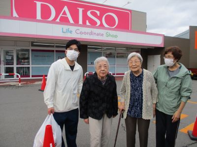 100円ショップにいきました。色々な物がたくさんあって見るだけで楽しい時間です。「あら、これも100円だよ」と驚くやら、感心するやら。化粧品も100円なので自分で選んで買っています。通りすがりに美味しそうなお菓子があって足が止まりました。レジは無人で機械相手に支払です。帰ったら袋の中にはおやつがたくさん入っていました。また行きたいそうです。