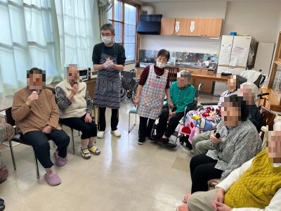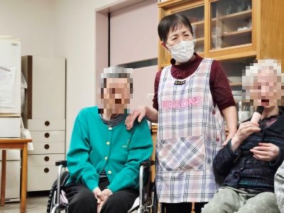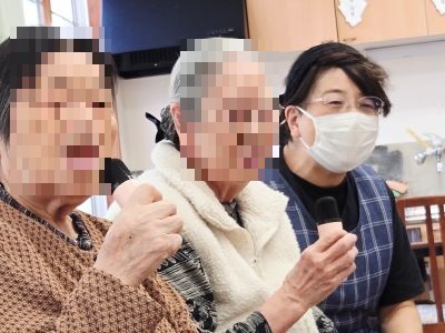 感染症予防対策(換気、手指、マイクの消毒)をしながら入居者様方にカラオケで楽しく過ごしていただきました。皆様それぞれ、『ブルー・ライト・ヨコハマ』『リンゴの唄』『』『瀬戸の花嫁』『東京のバスガール』『お久しぶりね』『丘を越えて』『高校三年生』等、お好き(十八番)な曲を選び、元気に仲良く親睦を深めておられました。