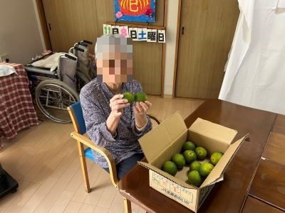 カボスをたくさん頂きました。果汁を絞って、砂糖・ゼラチンを入れてゼリーを作りました。さわやかな香りと優しい甘さで、口の中はサッパリ!毎日でも食べられると言って下さいました。