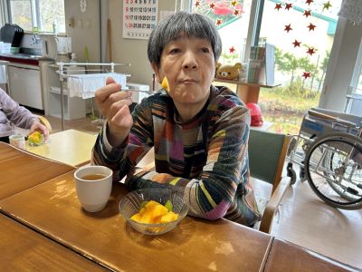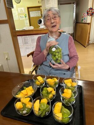 今度は、柿とシャインマスカットをいただきました。皆さんで秋の味覚を堪能し、大変美味でした。差し入れ誠にありがとうございました。