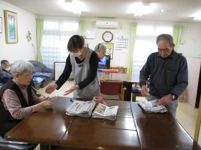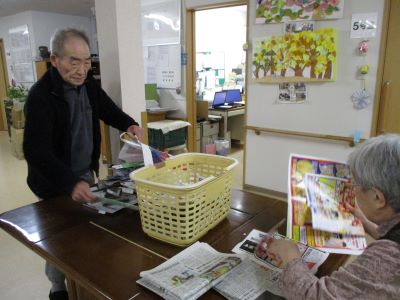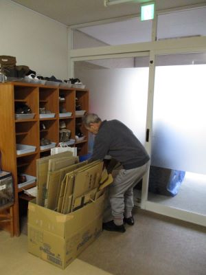 今日は新聞紙や空き箱、牛乳パックなどを種類分けしてまとめています。明日の朝8:30前までに町内のゴミステーションに運びます。「明日は雪が凄いから出してこようか」「いや、駄目だ。熊が来ると大変だから決められた明日に出そう」「熊にはかなわないからな」と、地域で暮らす事をしっかりと認識し、ルールを守っています。明日はどうか大雪になりませんように。