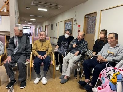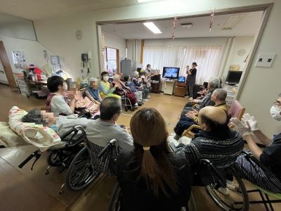 今月も、感染症予防対策(換気、手指、マイクの消毒)をしっかりと行いながら入居者様方に仲良く元気に歌っていただきました。『見上げてごらん夜の星を』『君といつまでも』『神田川』『22歳の別れ』『有楽町で逢いましょう』『愛の水中花』『リンゴの唄』『高校三年生』等を選び、普段、シャイな男性入居者様方も流れてくる懐かしのメロディーに思わず気持ちよさそうに歌っておられました。