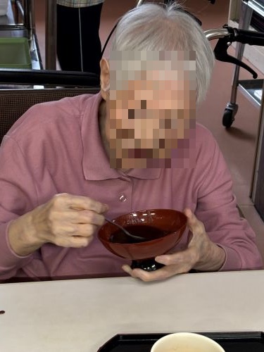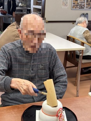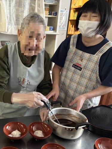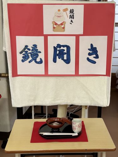 1月11日に鏡開きをしました。鏡開きですが、お餅ではなくて白玉粉でお汁粉を作り食べました。甘い味に、皆様ほっこりされてアッと言う間に完食されていました。