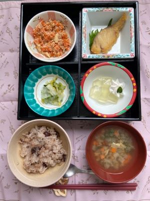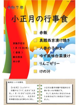 赤飯に入っている小豆には利尿作用や解毒作用があるといわれていて、むくみをとり胃腸の調子を整える効果があります。また、エネルギーを作るのを助けてくれたり疲労回復に役立つビタミンB1やミネラルも豊富に含まれています。年末からお正月にかけて食べ過ぎてしまった方にもおすすめです。