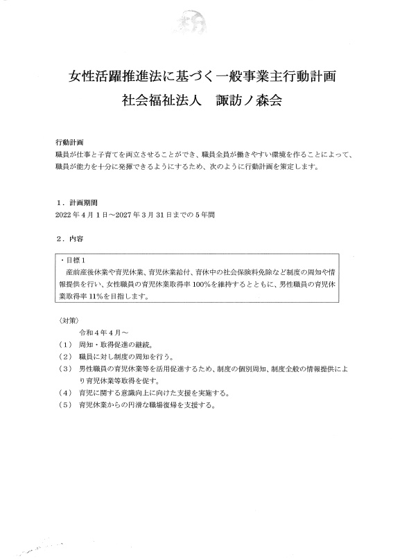 女性活躍推進法に基づく一般事業主行動計画