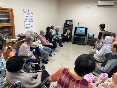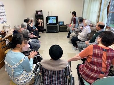 感染症予防対策(換気、手指、マイクの消毒)をしながら入居者様方に楽しく元気に歌っていただきました。皆様それぞれ、お好きな曲を選び、元気に歌って親睦を深めておられました。十八番を歌い終えた男性入居者様A様が、「今日は声が伸びなかった。最近歌っていなかったからなあ」と話されると、女性入居者様B様が、「たいした良かったよ。最高だ」とすかさず話されると照れるA様の姿が印象的でした。
