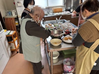 皆様で仕上げた桜の樹を眺め手作り弁当でお花見を楽しみました。