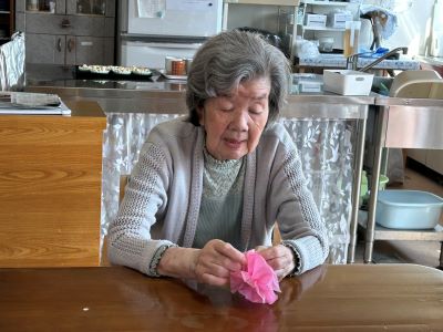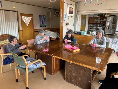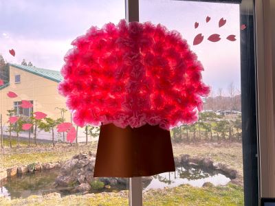 皆さん、手先が器用で、アッという間にリビングに桜の花が咲きました。