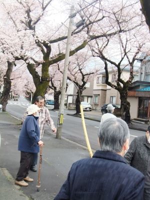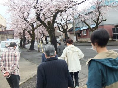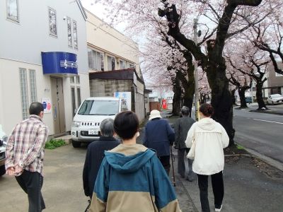 桜川へ桜観賞バスツアーに向かいました。あいにくの曇り空でしたが、参加した皆様は桜のトンネルを歩いたり、花びらに触って桜を楽しみました。